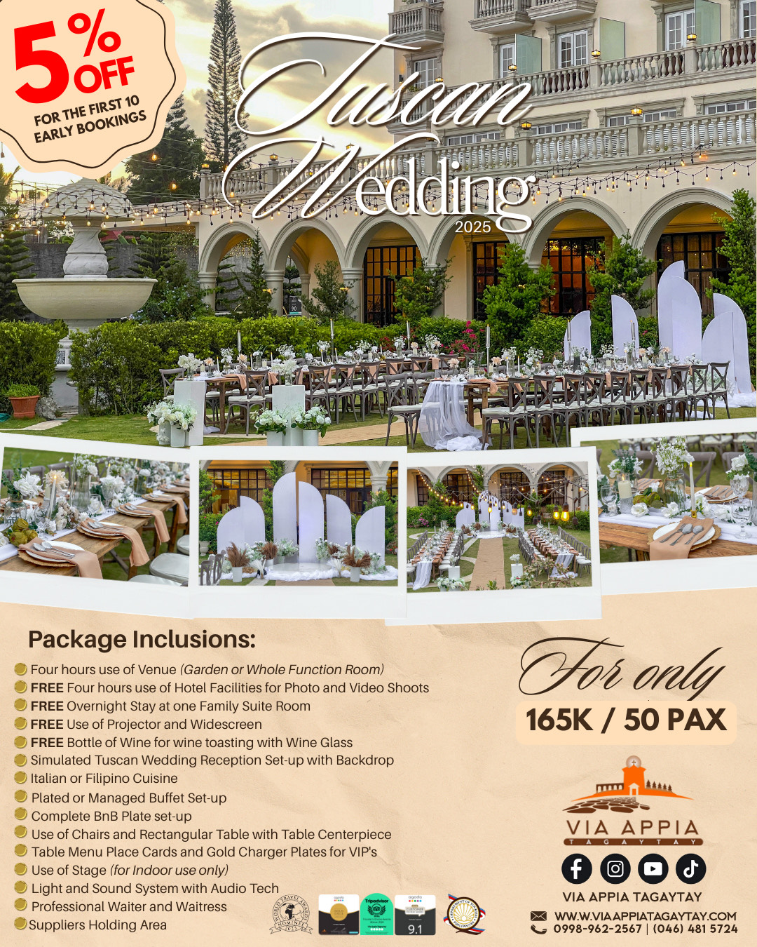 Our Tuscan Wedding Package for only 165K for 50 pax.